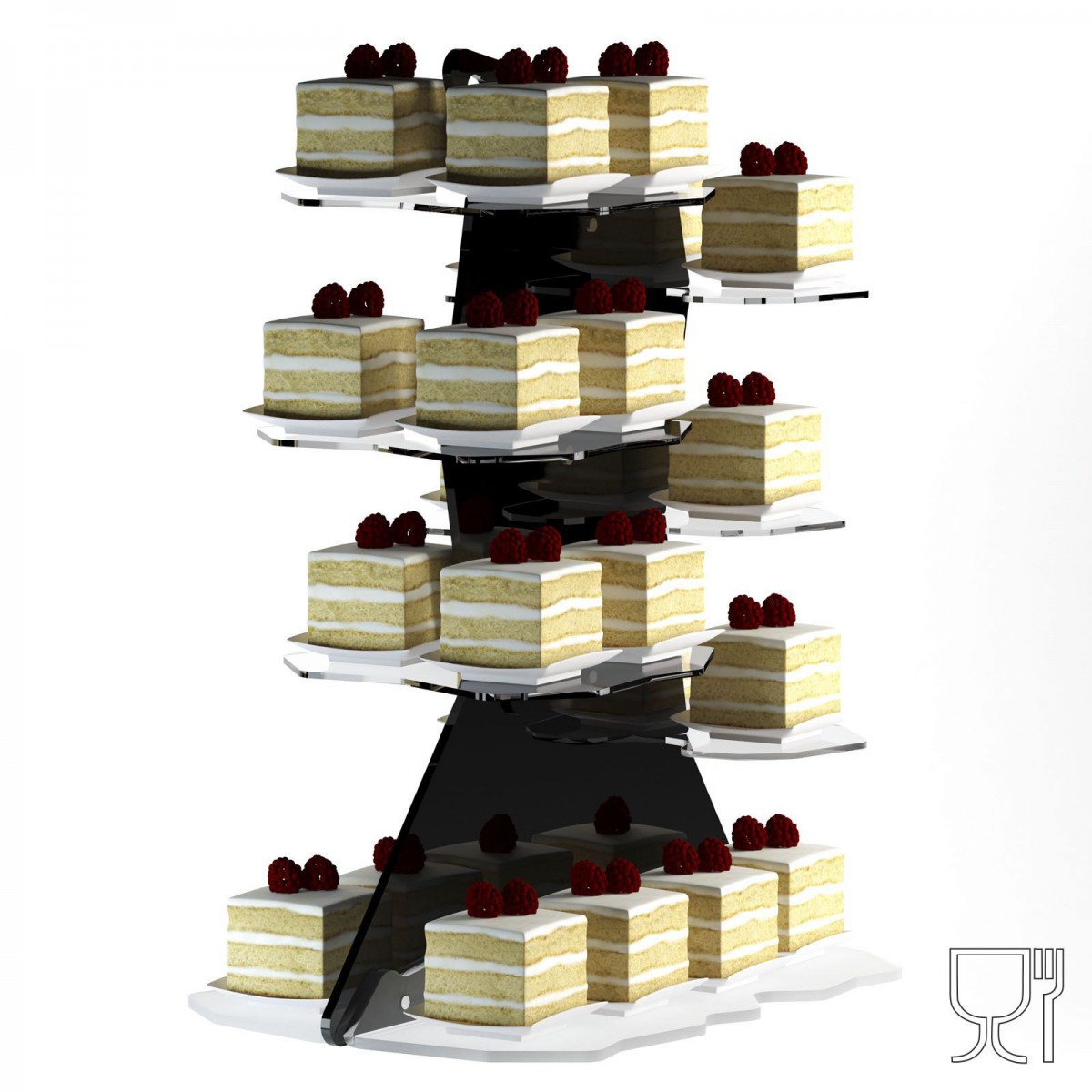 Mehrzweckdisplay aus schwarzem und satiniertem Plexiglas für Fingerfood, 3 Ablagen, Dicke 5 mm