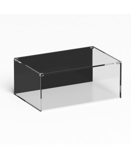 Anpassbar – Thekenvitrine aus durchsichtigem Plexiglas mit Deckel und weißem Sockel | schwarze Seite - dick. 5 mm