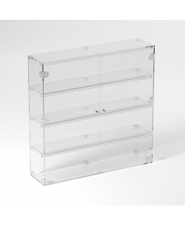 Große Vitrine aus transparentem Plexiglas mit 4 transparenten Regalen, geeignet zur Präsentation verschiedener Artikel.
