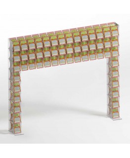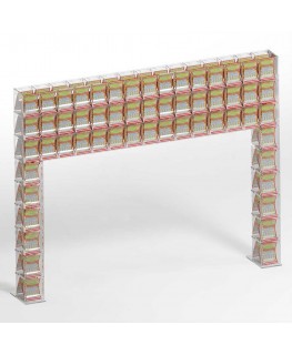 Rubbellos-Thekendisplay aus transparentem Plexiglas mit 57 Behältern und Fronttür auf der Händlerseite - Maße: 180 x 17 x H136 cm