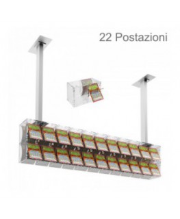 Expositor de tarjetas rasca y gana para montaje en techo, en plexiglás transparente, equipado con una puerta frontal en el lado del minorista, fácil de abrir y cerrar para proteger las tarjetas rasca y gana. Ideal para estancos, bares, etc.