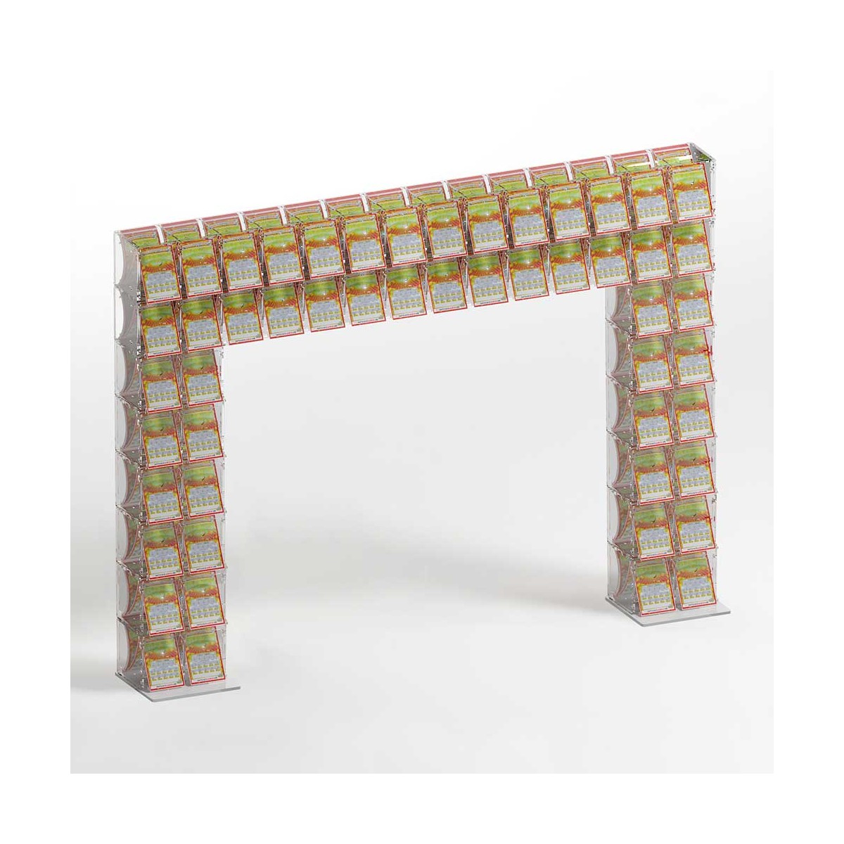 Expositor de sobremesa para tarjetas rasca y gana en plexiglás transparente con 52 compartimentos y puerta frontal en el lado del vendedor - Dimensiones: 168x17x H121 cm