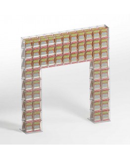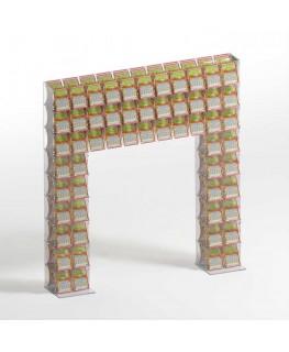 Expositor de sobremesa para tarjetas rasca y gana en plexiglás transparente con 57 compartimentos y puerta frontal en el lado del vendedor - Dimensiones: 133x17x H136 cm