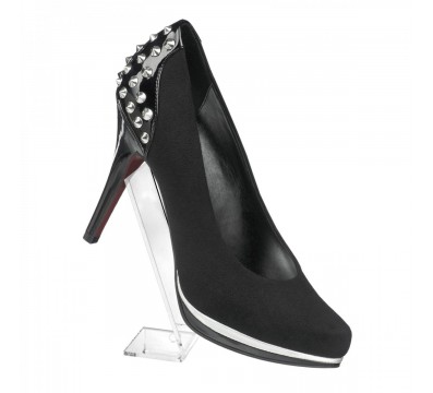 Expositor de tacones en plexiglás transparente ideal para exponer zapatos en tiendas de ropa, calzado y artículos de cuero.
