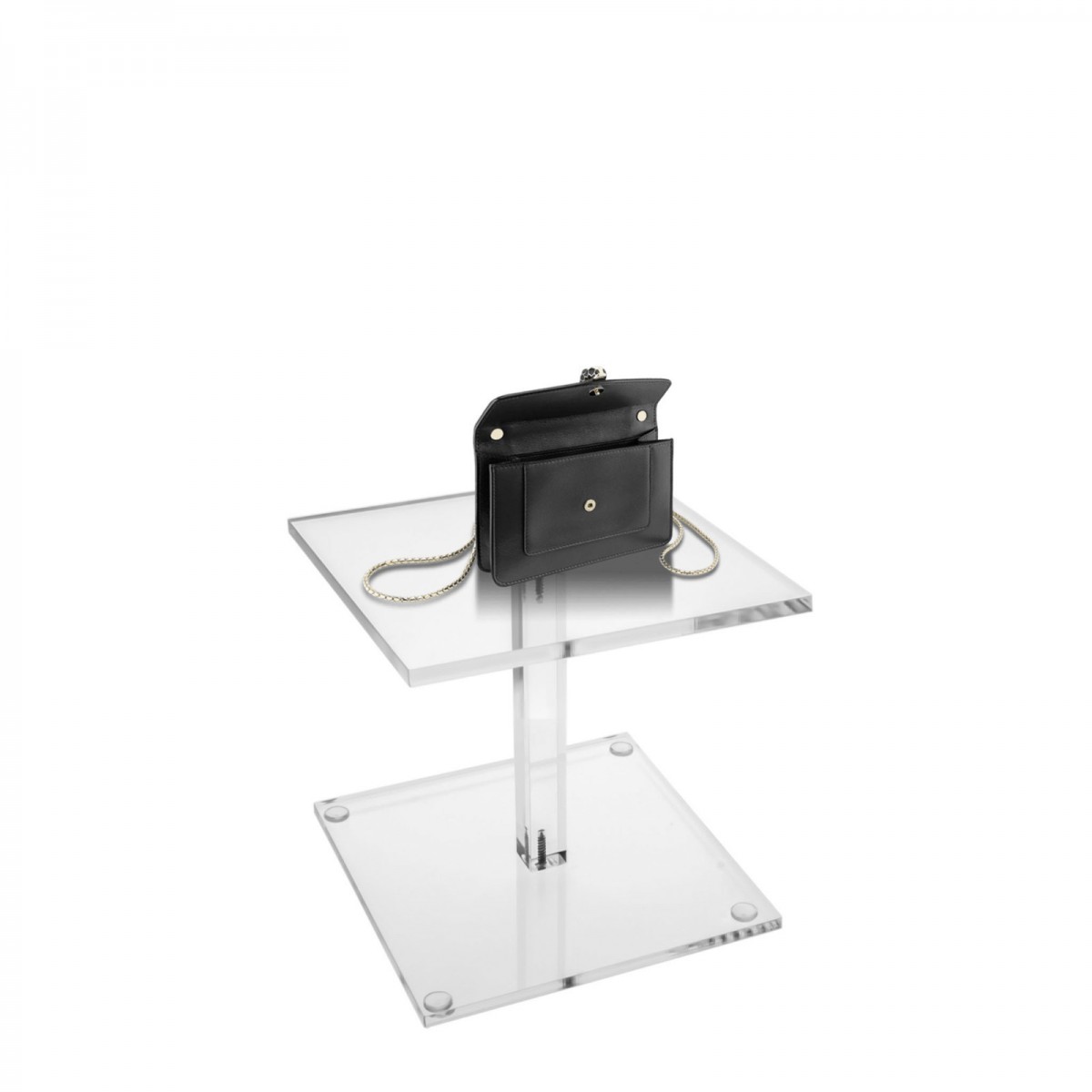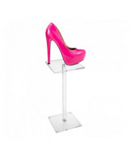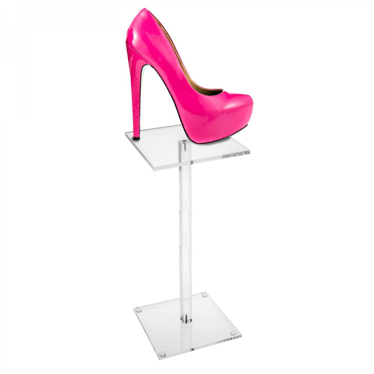 Expositor universal en plexiglás transparente ideal para exponer zapatos y artículos de piel como bolsos, cinturones, etc.