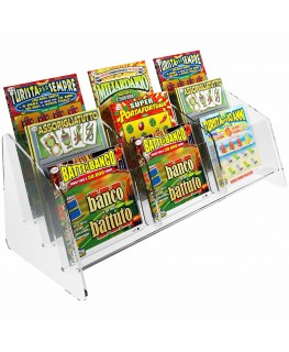 Expositor de sobremesa para tarjetas rasca y gana en plexiglás transparente, ideal para estancos, bares, etc.
