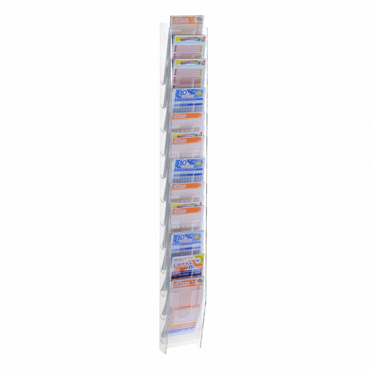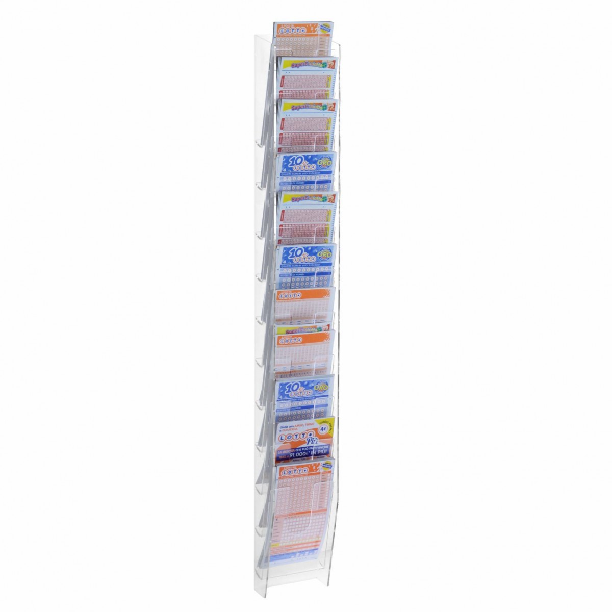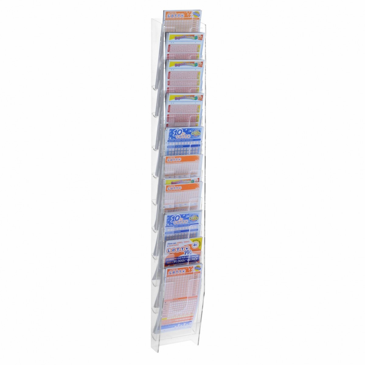 Expositor de pared de plexiglás transparente para boletos de apuestas y tarjetas rasca y gana