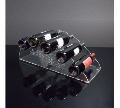 Portabotellas de sobremesa de plexiglás transparente para 5 botellas - Dimensiones: 54 x 20 x H20 cm