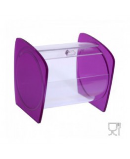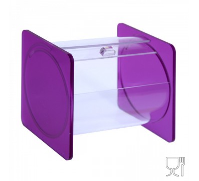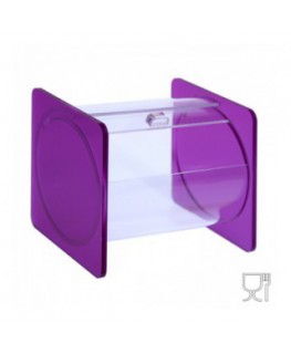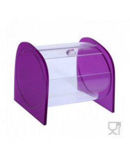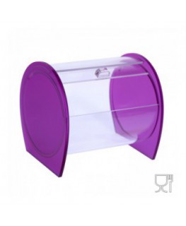 Porta caramelos de sección circular en plexiglás transparente y con paneles laterales en plexiglás satinado FUCSIA