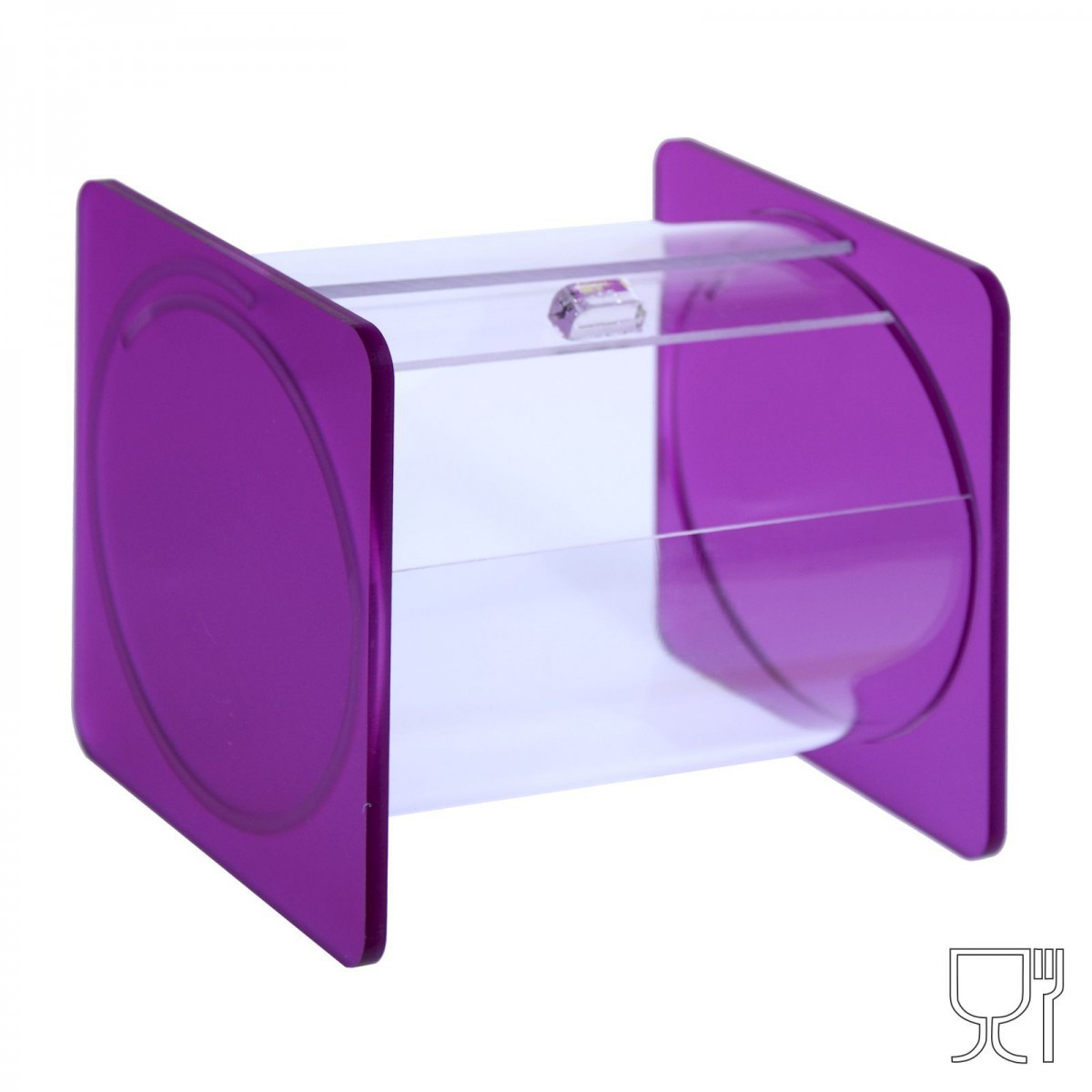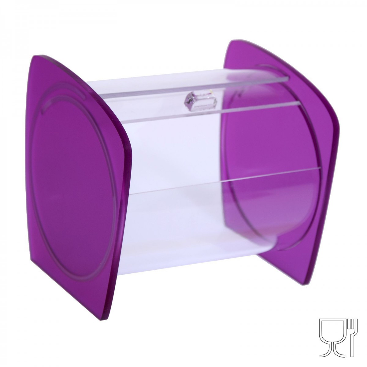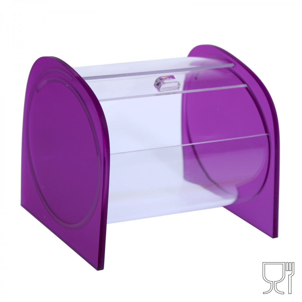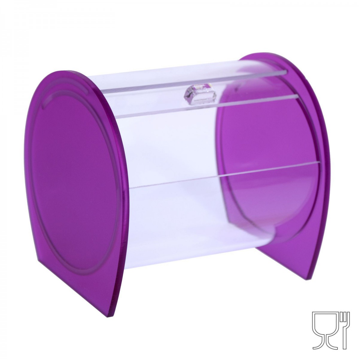 Porta caramelos de sección circular en plexiglás transparente con laterales satinados FUCSIA