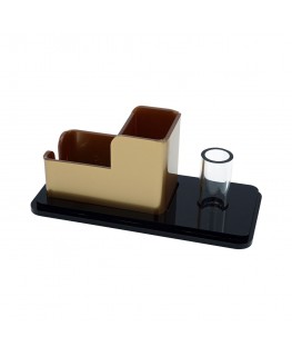 Portaazucareros, agitadores y vasos de plexiglás negro y dorado con 3 posiciones