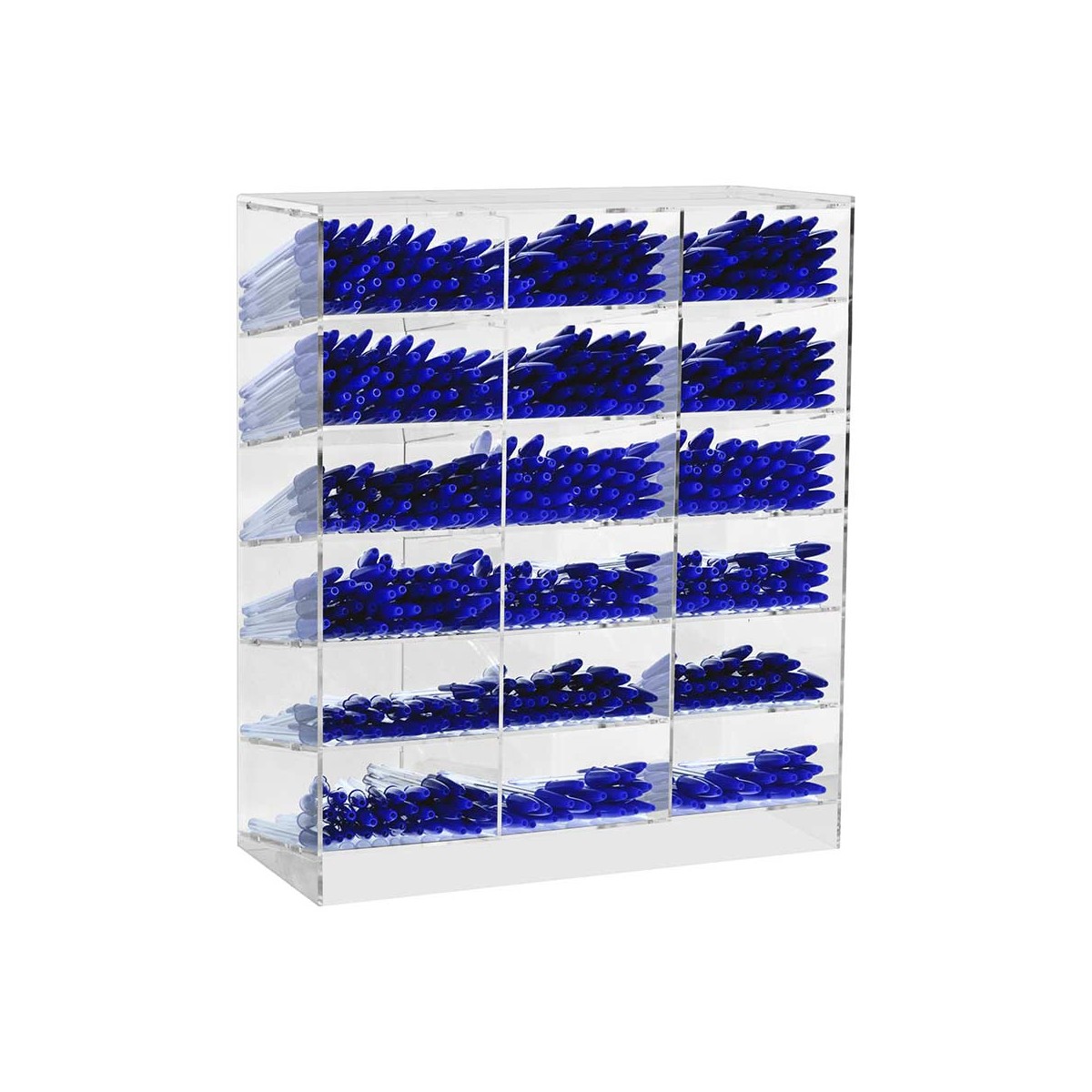 Portalápices de escritorio de plexiglás transparente con 18 compartimentos