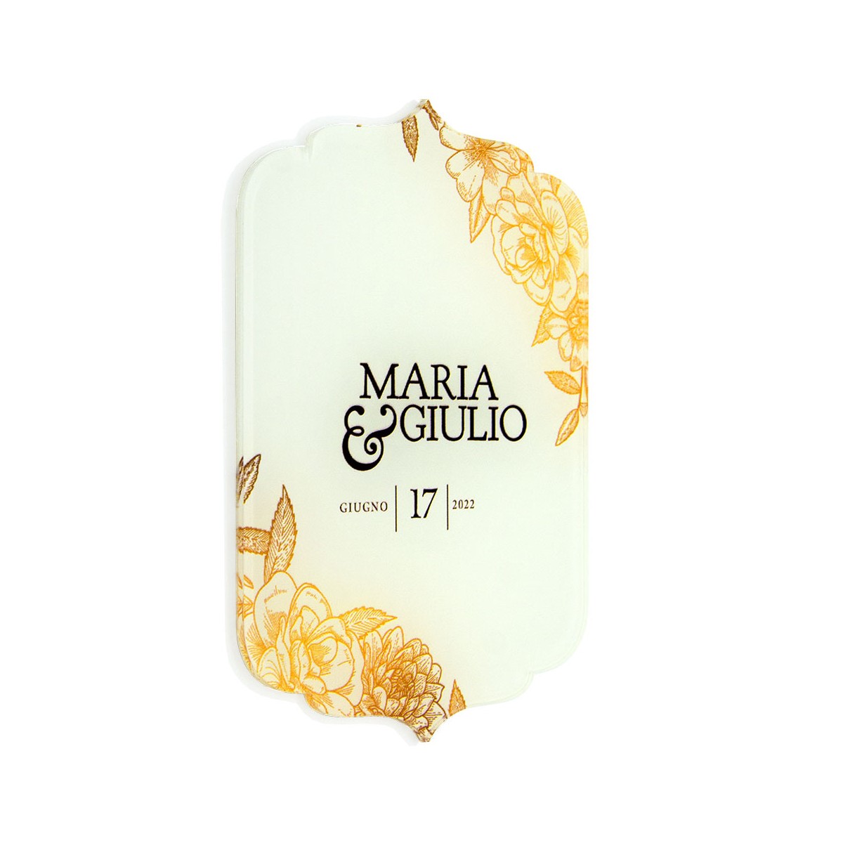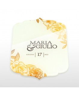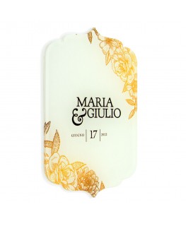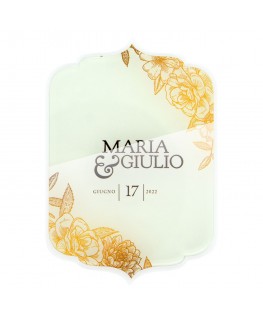 Participación en plexiglás transparente o coloreado, en forma de 4 - Medidas: L 10,5 x H 15 cm
