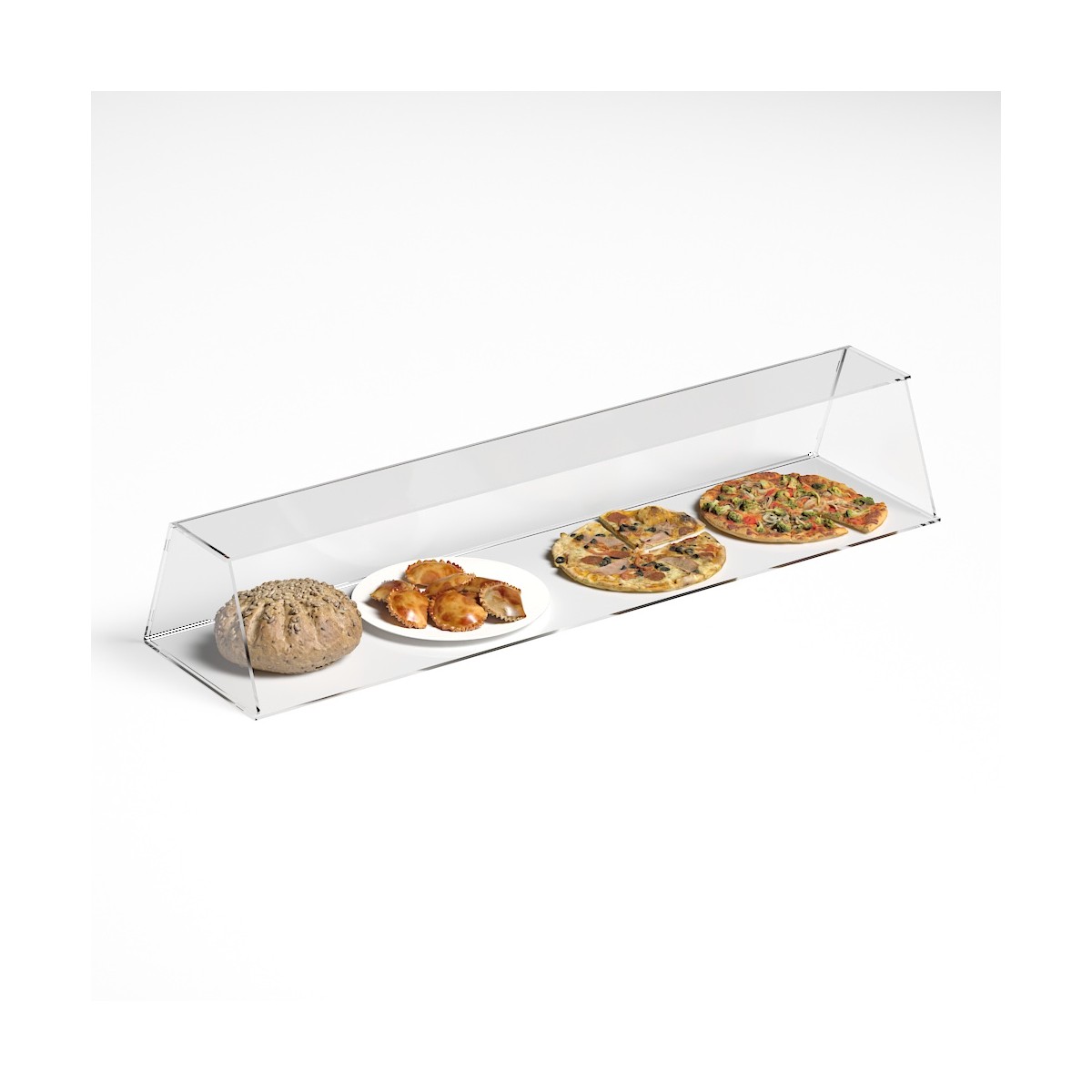 Mampara protectora de plexiglás transparente para alimentos con paneles laterales - Dimensiones: 120 x 31 x 21 cm
