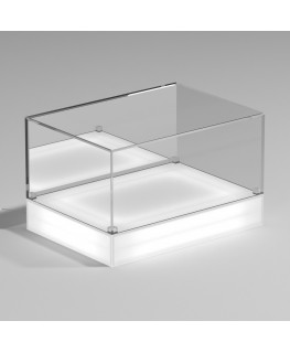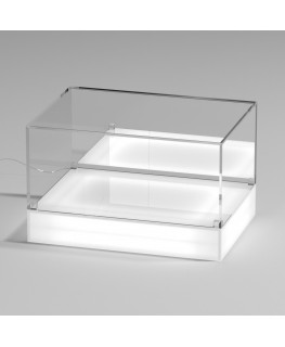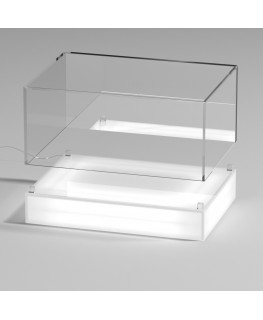 Personnalisable - Vitrine de comptoir avec base opale éclairée par LED et plateau en plexiglas transparent, 5 côtés fermés et fond supporté | rétroviseur latéral - épaisseur 5 mm