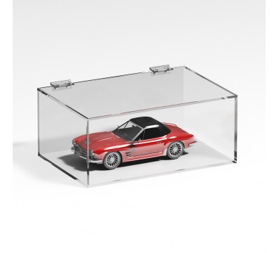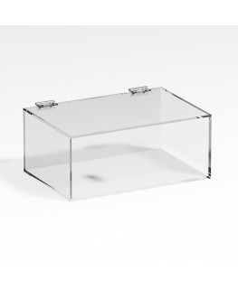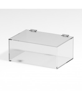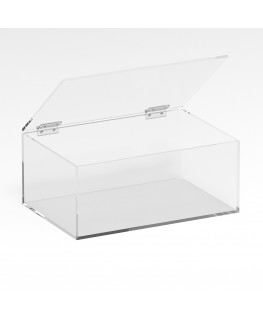 Personnalisable - Vitrine de comptoir en plexiglas transparent 5 côtés fermés avec porte supérieure battante fond transparent | côté transparent - épais. 5 mm