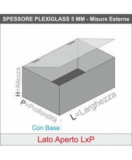 Vitrine d'exposition en plexiglas transparent PERSONNALISABLE pour comptoir 5 côtés fermés avec porte supérieure équipée de charnières - Épaisseur 5 mm (Panneau de base transparent - Panneau latéral transparent)