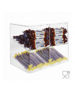 Présentoir à bonbons en plexiglas transparent avec étagère inclinée