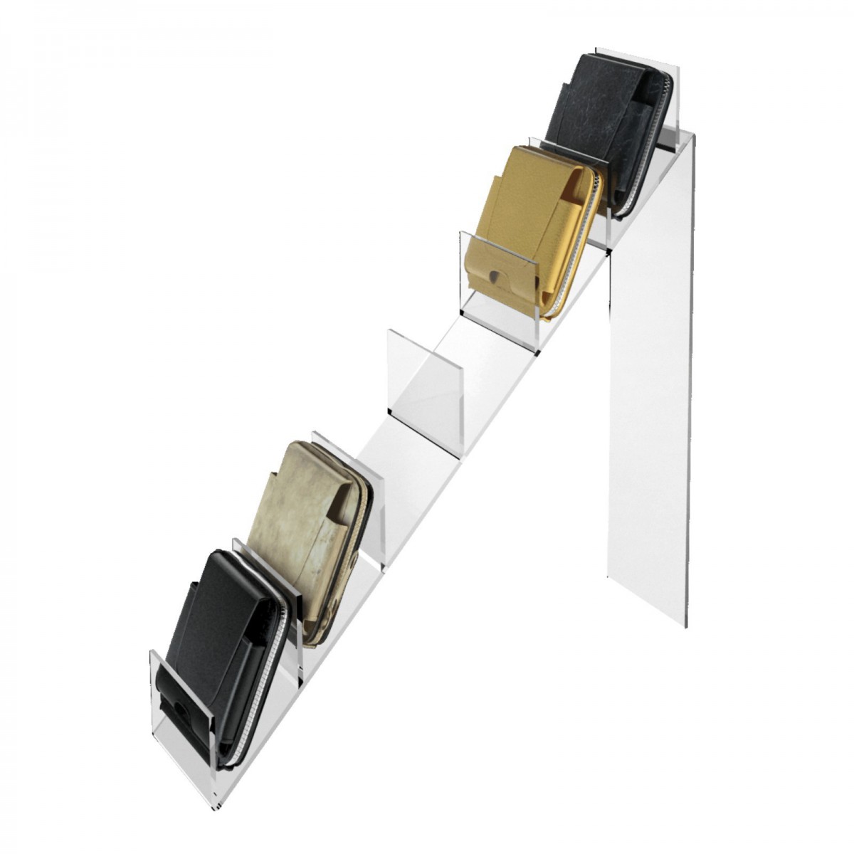 Présentoir portefeuille en plexiglas transparent à 6 niveaux, idéal pour les magasins de vêtements et de maroquinerie