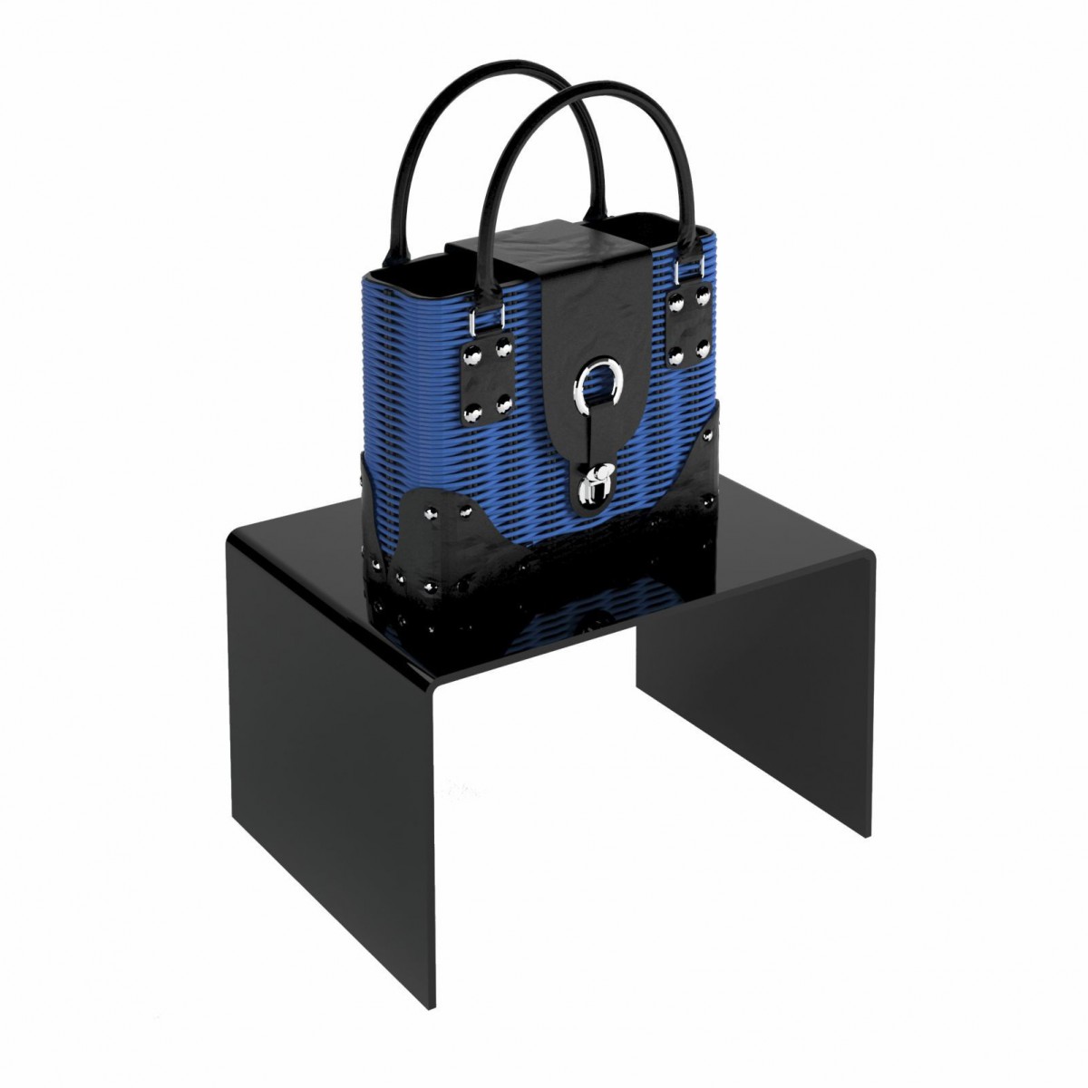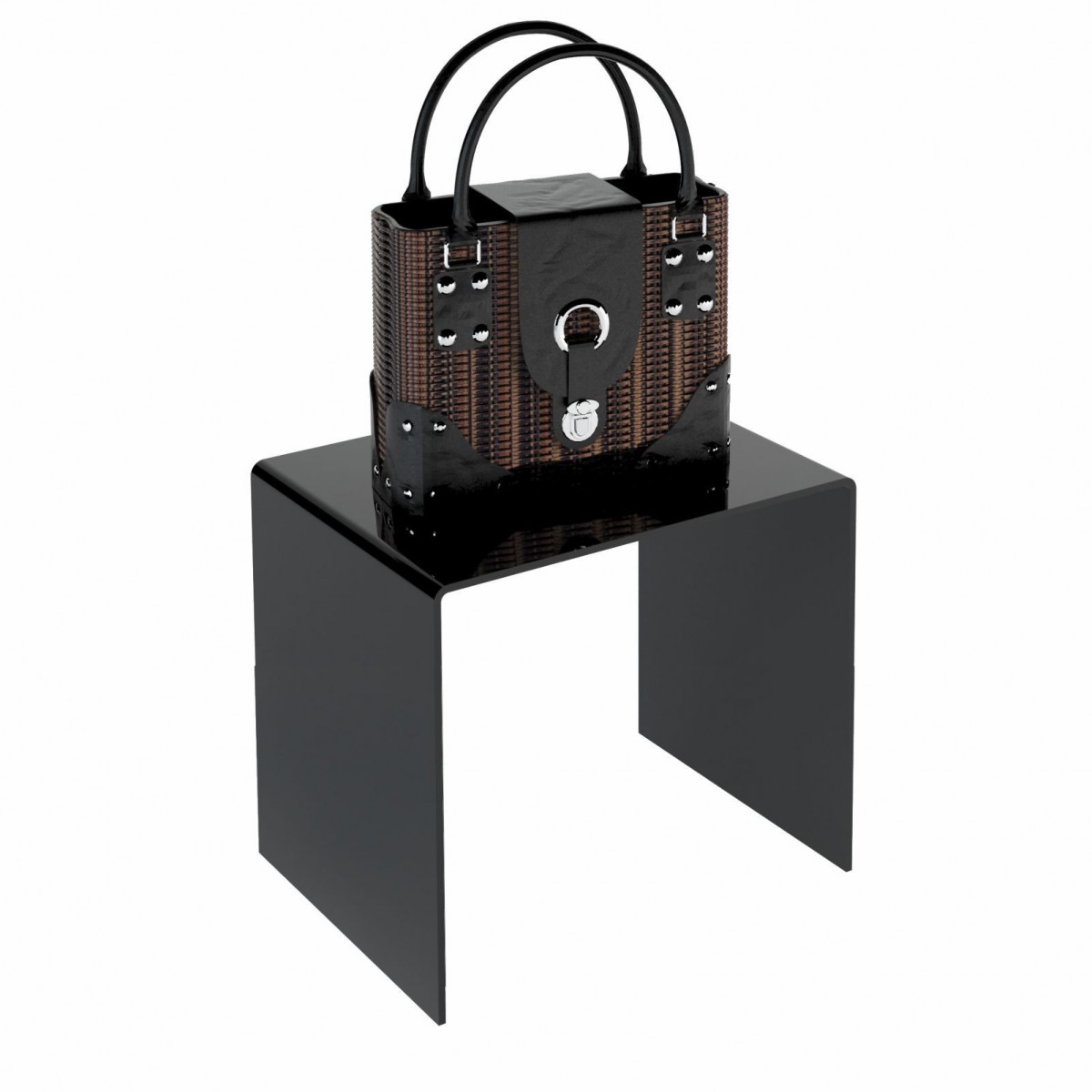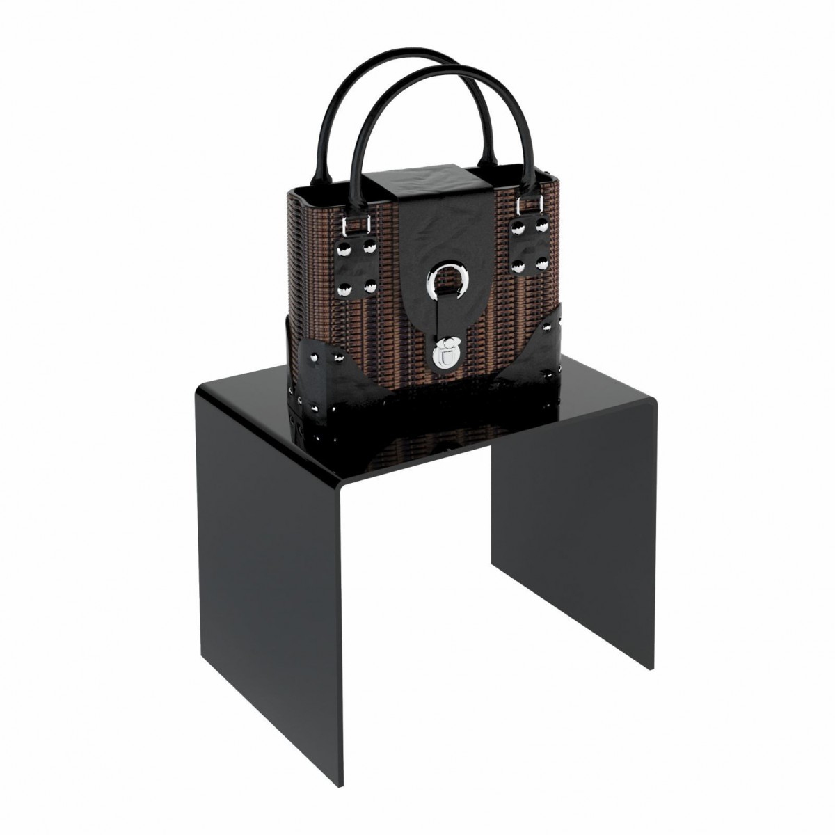 Présentoir en plexiglas noir idéal pour exposer des articles en vitrine.