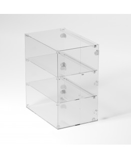 Grande vitrine en plexiglas transparent avec 3 étagères transparentes adaptées à l'exposition de divers articles.