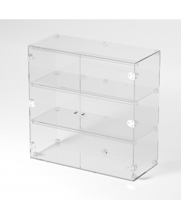 Grande vitrine en plexiglas transparent avec 3 étagères transparentes adaptées à l'exposition de divers articles.
