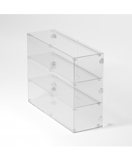 Grande vitrine en plexiglas transparent avec 3 étagères - Dimensions : 90 x 30 x h70 cm