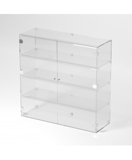 Grande vitrine en plexiglas transparent avec 4 étagères transparentes adaptées à l'exposition de divers articles.