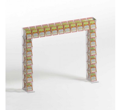 Countertop or ceiling scratch card display in transparent plexiglass with 23 containers equipped with a front door on the retailer side, easy to open and close to protect the scratch cards. Ideal for tobacconists, bars, etc.