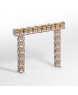 Countertop scratch card display in transparent plexiglass with 23 containers and front door on the retailer side - Dimensions: 133x17x H106 cm