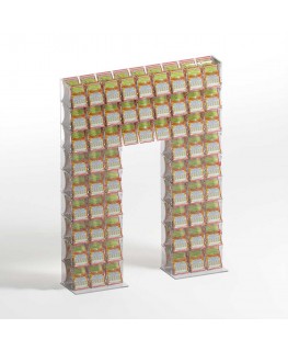 Countertop or ceiling scratch card display in transparent plexiglass with 59 containers equipped with a front door on the retailer side, easy to open and close to protect the scratch cards. Ideal for tobacconists, bars, etc.