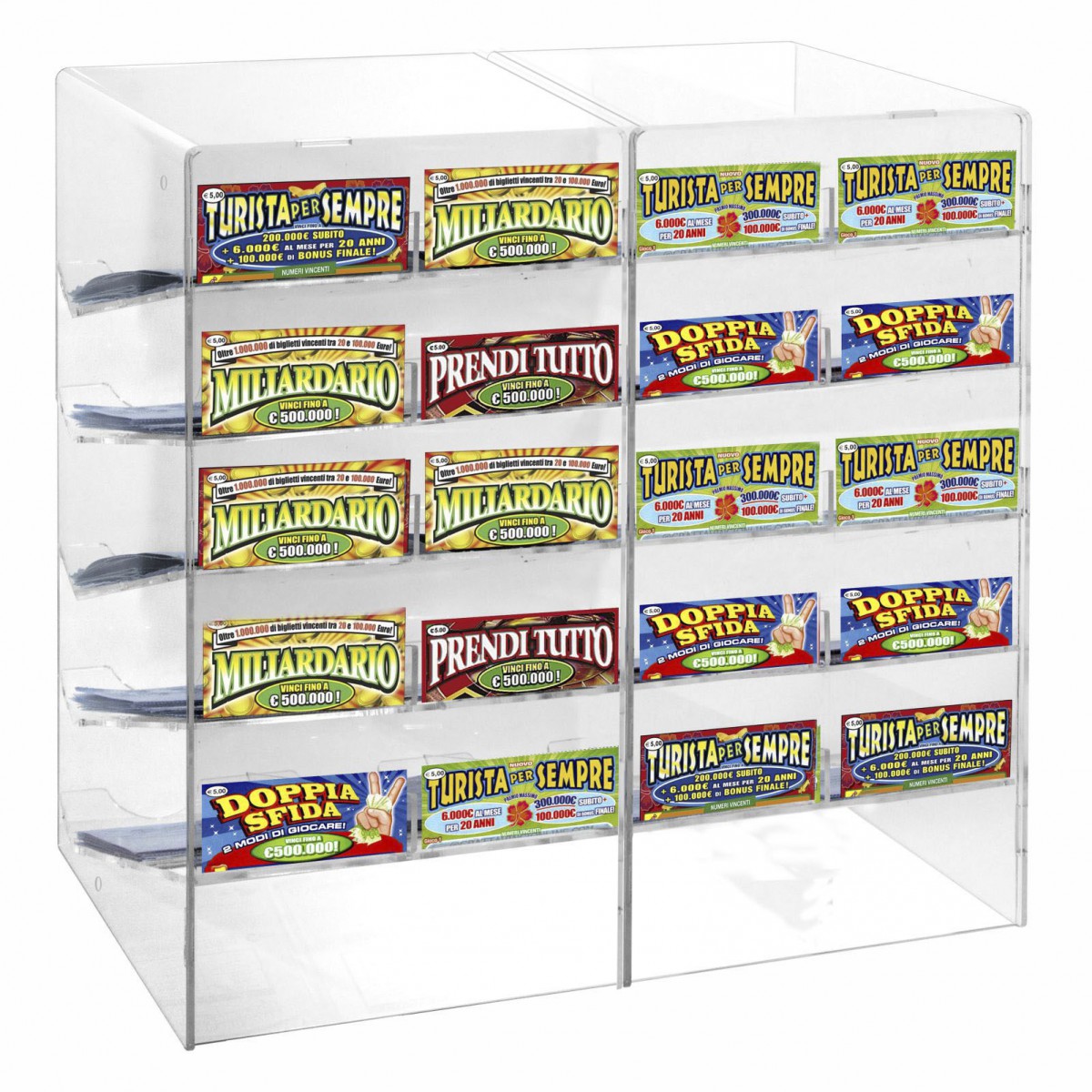 Countertop scratch card display in transparent plexiglass ideal for tobacconists, bars, etc.