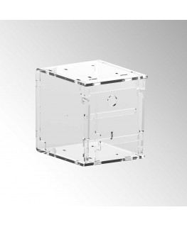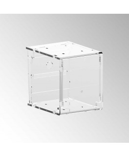 Counter or ceiling scratch card display in transparent plexiglass with 3 containers with front door on the retailer side - Dimensions: 37x17x H15 cm
