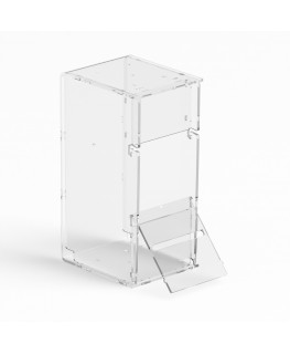 Counter or ceiling scratch card display in transparent plexiglass with 6 containers equipped with a front door on the retailer side, easy to open and close to protect the scratch cards. Ideal for tobacconists, bars, etc.