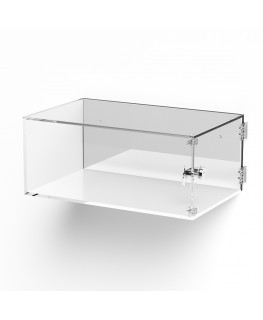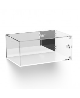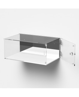 Customizable - Wall-mounted plexiglass display case with door and side hinges and white base lock closure | side mirror - 5 mm thick