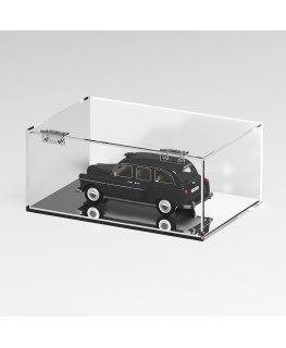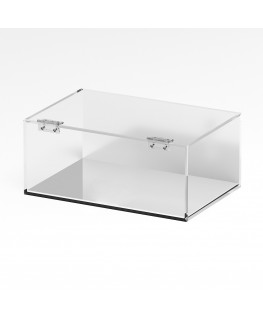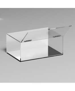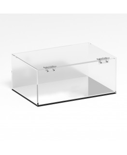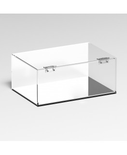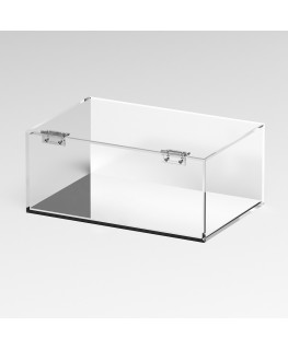CUSTOMIZABLE Transparent plexiglass display case for counter 5 closed sides with hinged front door Mirror Base | White Side - Thickness 5 mm
