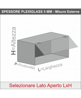 CUSTOMIZABLE Transparent plexiglass display case for counter 5 closed sides with front door equipped with hinges - Thickness 5 mm (Mirror base panel - White side panel)