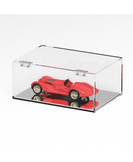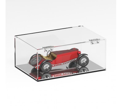 CUSTOMIZABLE Transparent plexiglass display case for counter 5 closed sides with hinged front door Mirror Base | Transparent Side - Thickness 5 mm