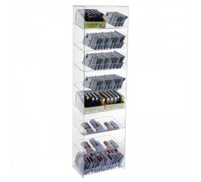 Transparent plexiglass lighter/tobacco holder display with 8 inclined shelves