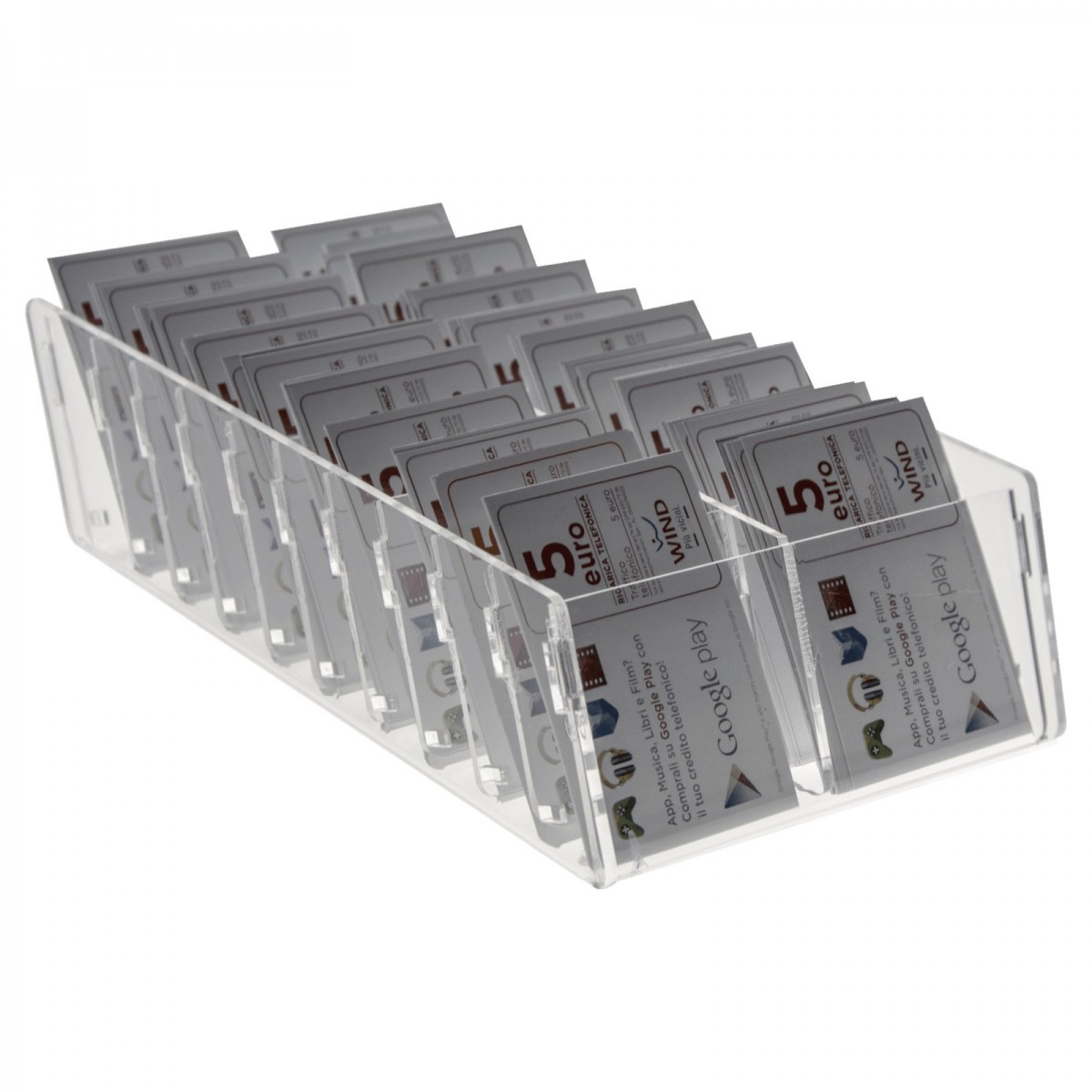 Countertop telephone card display in transparent plexiglass, ideal for tobacconists, bars, etc.