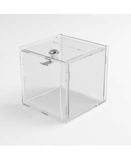 Countertop urn in transparent plexiglass used as a shop window or counter display, or as a furnishing accessory for shops.