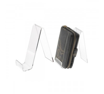 Universal display stand in transparent plexiglass, height 17 cm, ideal for displaying shoes and leather goods such as purses, belts, etc.
