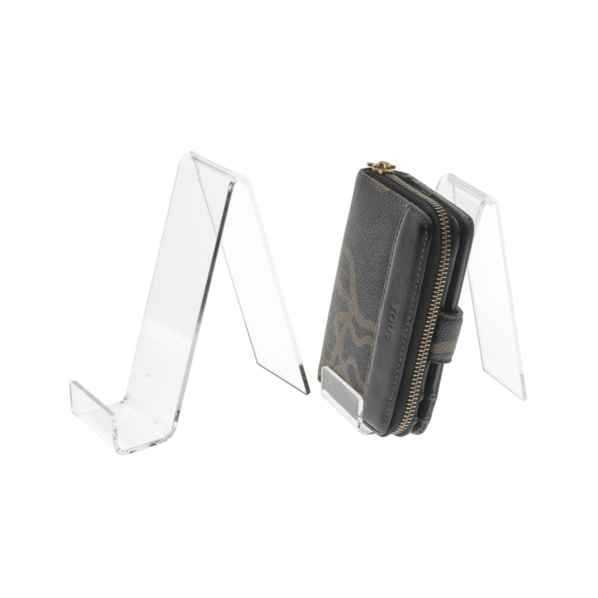 Universal display stand in transparent plexiglass ideal for displaying shoes and leather goods such as purses, belts, etc.