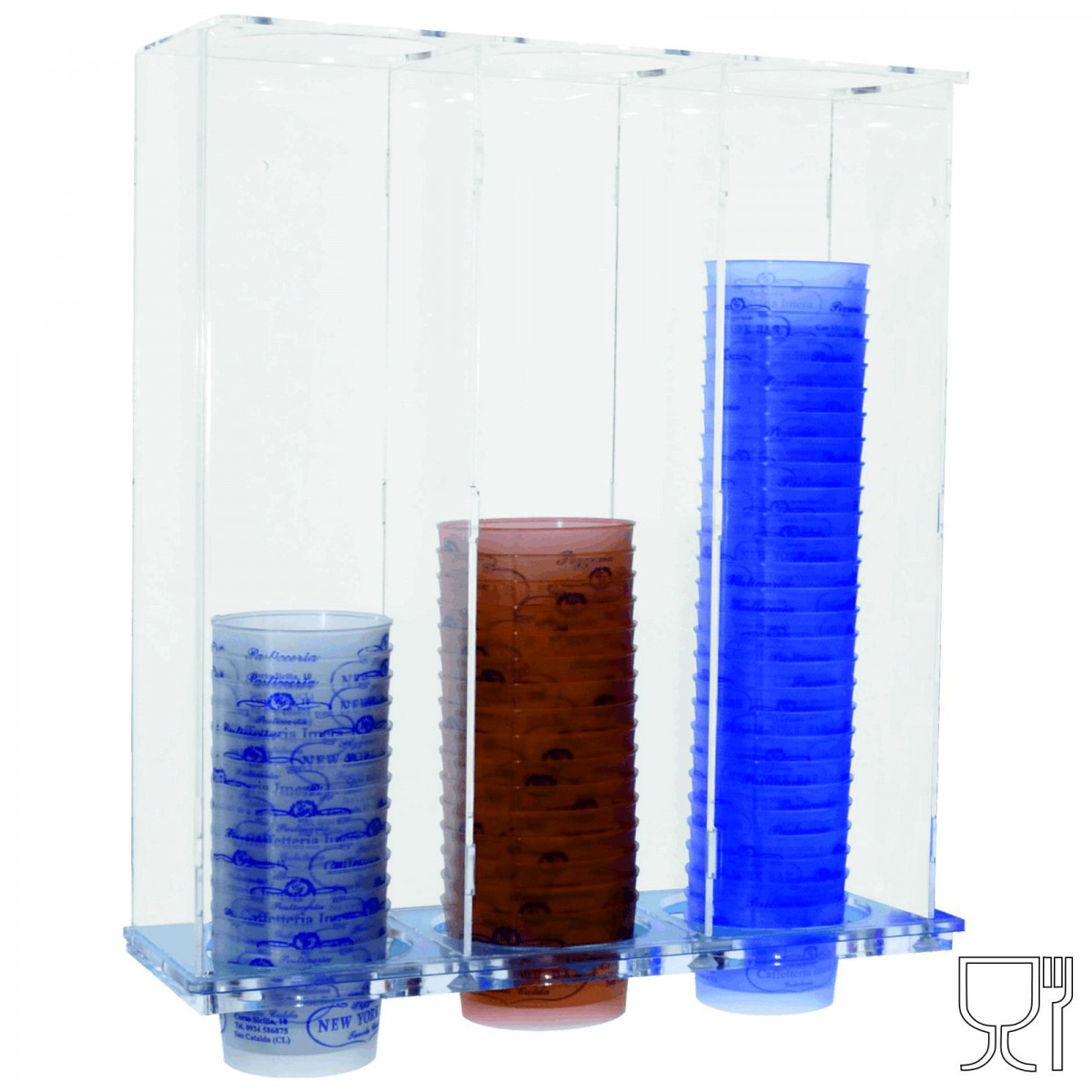 Bekerhouder van helder plexiglas voor aan de muur, geschikt voor gestapelde lege ijsbekers.