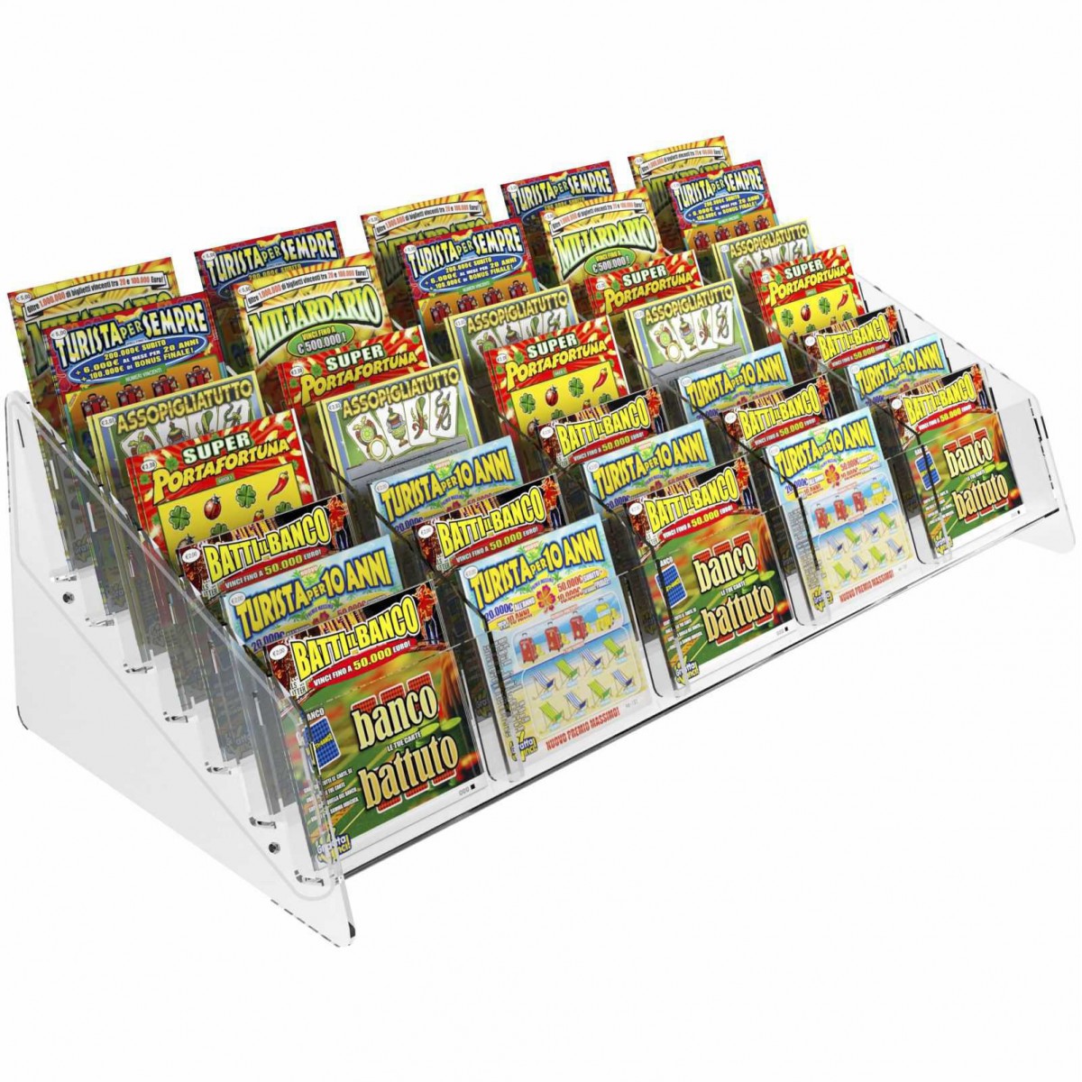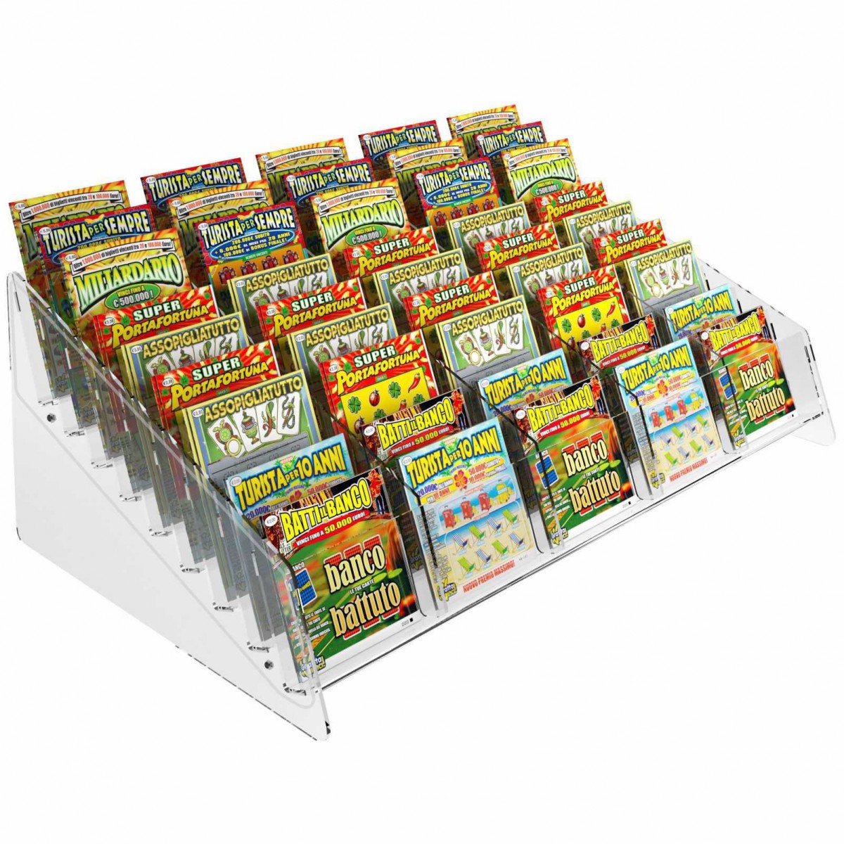 E-489 - Espositore gratta e vinci da banco in plexiglass trasparente