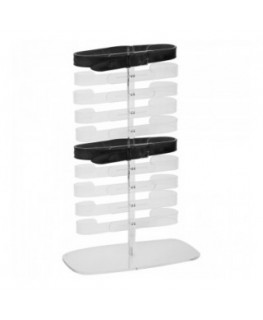 Verstelbare riemhouder van transparant plexiglas, ideaal voor het inrichten van etalages van kleding, lederwaren, enz.