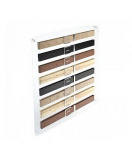 Transparante plexiglas wandhouder voor riemen, ideaal voor het inrichten van etalages van kleding, lederwaren, etc.